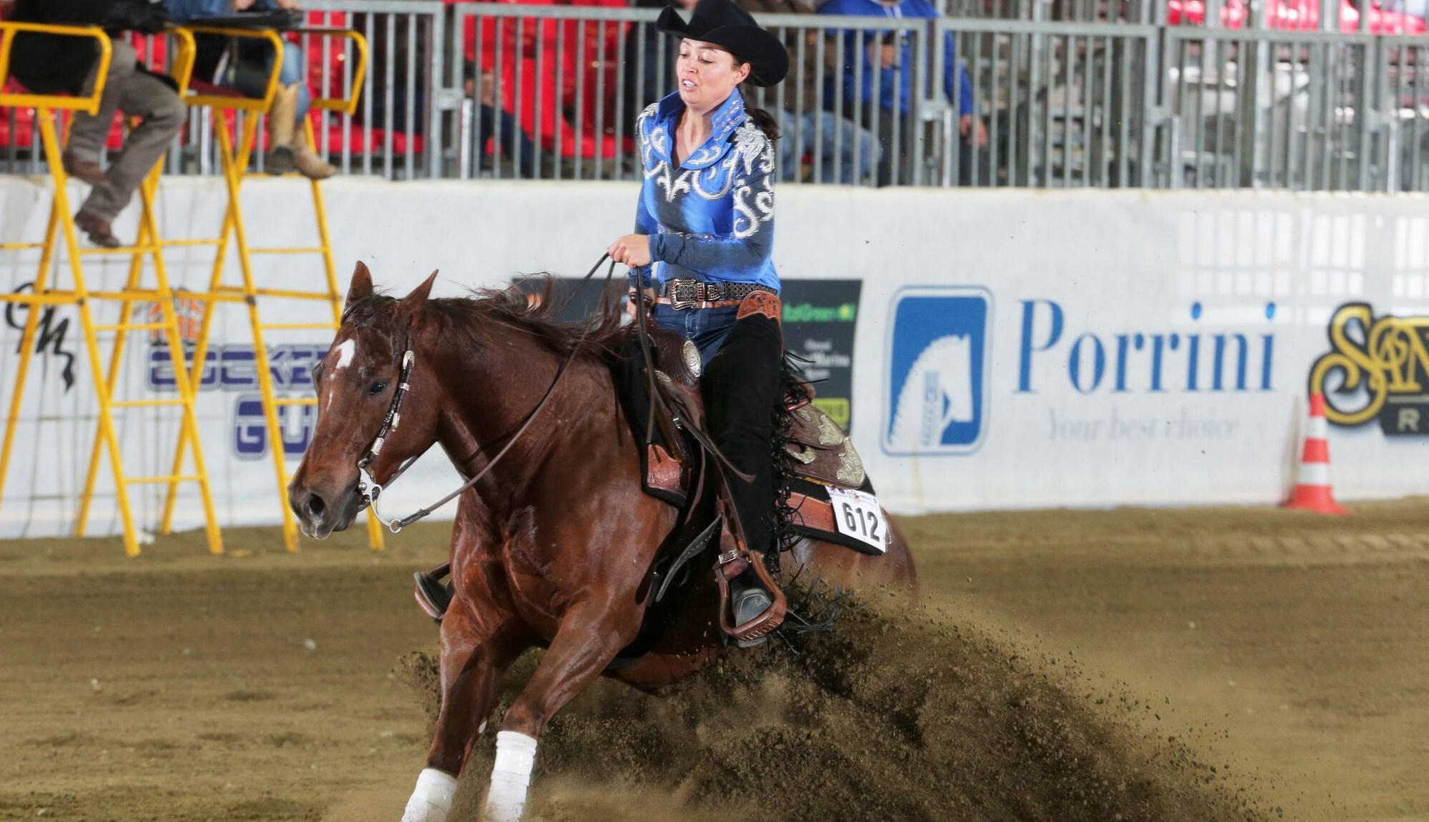 In testa alla divisione livello 4, con un added di 265mila euro, rimane saldamente in testa alla classifica l’amazzone belga Ann Fonck. Nel primo go la stessa aveva ottenuto un punteggio di 221 — top score ex aequo — in sella a Smart Little Ruffle, una cavalla figlia dell’NRHA Five Million Dollar Sire Smart Spook per Ruffle Me Up di proprietà di Brigitte Steiner e allevata da Greg L. Hill. Oggi, grazie al 220.5 ottenuto, Fonck e la sua monta si sono aggiudicate il top composite score di 441.5. Smart Little Ruffle ha al suo attivo 3,747 dollari Nrha grazie al sesto posto ottenuto nel Belgium Snaffle Bit Futurity e il terzo posto segnato nell’Nrha Germany Breeders Futurity, sempre tra le redini di Ann.
