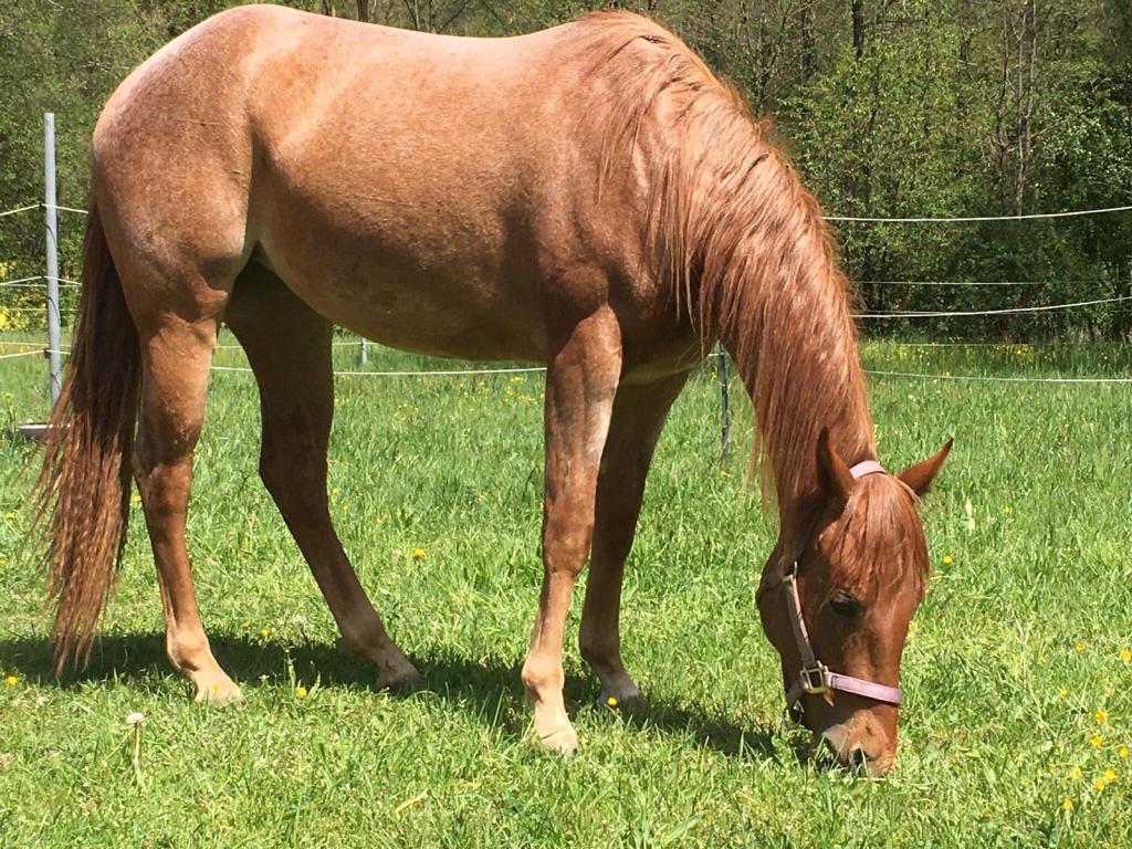 | Ex MUY BUENOS SWEETIE rd ro 2000 QUARTER HORSE Descendant of POCO BUENO ![]() Breeder: Jess Hankins, Rocksprings, TX. Owner: E. P. Waggoner, Ft. Worth, TX. 100% Foundation H-37.0/P-8.0 AQHA Champion/ROM Arena/Hall of Fame Sire of AQHA Chs/ROM Arena/Pro.Dghts/etc. HERDA Carrier He was grand champion stallion at Denvers National Western Stock Show, the Southwestern Exposition and Fat Stock Show in Fort Worth, State Fair of Texas in Dallas and the American Royal Livestock Show in Kansas City. As a 4-year-old, in 1948, Poco Bueno started his performance career as a cutting horse, and his amazing ability helped him to quickly acquire an impressive record – and a legion of fans. He was the first quarter horse to be insured for $100,000.00. Poco Bueno died November 28, 1969 and Mr. Waggoner left specific instructions in his will that Poco Bueno was to be buried in a standing position in a grave across from the ranch entrance on Hwy. 283. More info can be found at http://www.waggonerranch.com/pokieinfo.htm | |