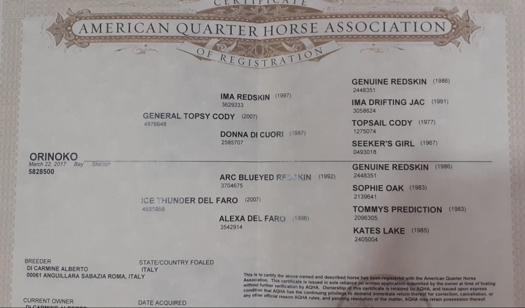 | Sire GENERAL TOPSY CODY 2007 QUARTER HORSE ![]() vincitore del titolo #BestHorsePurina 2019 | By IMA REDSKIN 1997 QUARTER HORSE By GENUINE REDSKIN ![]() LTE $34,866 AQHA Congress 1989 – OPEN Reserve Champion Lazy E – OPEN Finalist NRHA Derby 1990 – OPEN Champion (Bob Loomis), ANCR Special Events & Major Events Champion\\’s Sire |