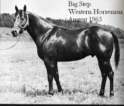 | Dam STEPS LITTLE REMEDY b 1988 QUARTER HORSE AQHA # | Ex STEPS LITTLE SCOOT sor 1977 QUARTER HORSE #1325021 Granddaughter of BIG STEP ![]() 63% NFQHA Breeder: Blain Lewis, Patagonia, AZ. Owner: Melvin G. Astleford, Minneapolis, MN Unplaced in 2 starts at Burwell Racetrack AQHA Leading Sire Leading Sire of AQHA Champions SIRE OF: 3 World Champions 7 Reserve World Champions 13 Superior Halter Winners 54 Superior Performance Winners 28 AQHA Champions NRHA Money Earners As of May 2006, 50 years after his birth, Big Step was listed as #16 on AQHA All Time Leading Sire of Western Pleasure Point Earners (Youth Division) & #22 All Time Leading Sire of Hunter Under Saddle Point Earners (Youth Division) |