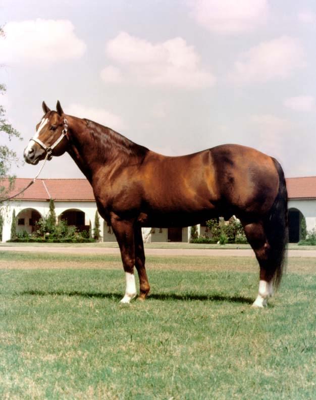 | Dam RAISE THE DEALER 2002 QUARTER HORSE | Ex MINNIE FRECKLE sor 1987 QUARTER HORSEA QHA #2624151 By COLONEL FRECKLES ![]() AQHA H-0/P-23 ROM Cutting AQHA Hall Of Fame 2004 1976 NCHA Fut Ch, NCHA LTE $46,305.26 87.5% foundation 78% NFQHA 972 foals – 417 perf. Sire of AQHA World Champion, 2 AQHA Res World Chs. 9 AQHA Superior Perf, 66 AQHA Arena ROM. Sire of NRHA Money earners ($123,092) and A Leading Maternal Grandsire NRHA Money Earners, incl Futurity Chs and Finalists. Sire of NCHA Money earners ($3,721,256) incl Futurity Chs and Finalists. A Leading Sire and Maternal Grandsire NCHA Money Earners. A Leading Sire and Maternal Grandsire NRCHA Money Earners. A Brother to Freckles Playboy. Died in October 1986 of Colitis X due to ingestion of blister beetles. |