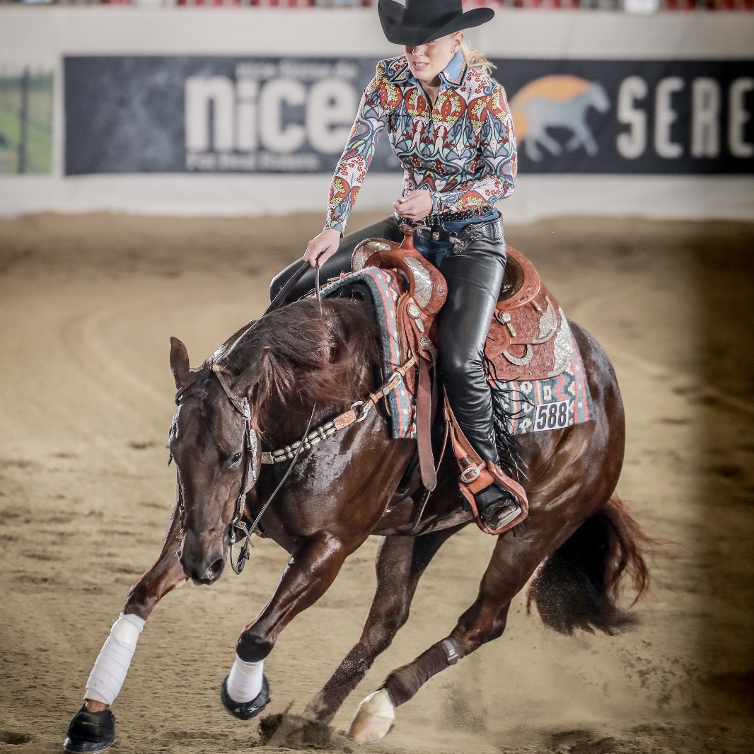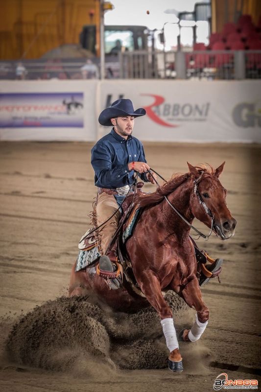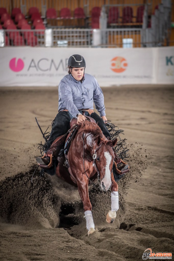 Dopo aver montato per quasi tre anni con Paolo Orlandini nella sua scuderia di Como, dove aveva portato un cavallo in pensione, Lucio conobbe e decise di acquistare As Just In Time, aka “Giustino”. A quel tempo questo Paint Horse figlio di One Gun e FG Easter Calbar, allevato da Stefania Bordogna, aveva solo due anni: «La prima volta che l’ho montato era appena stato domato, ma mi è subito piaciuto», ricorda il giovane reiner. «Stiamo crescendo insieme ed è davvero emozionante essere nelle finali del mio primo Futurity Europeo e anche italiano insieme a lui. La gara di oggi è stata divertentissima: Giustino era così bravo e rilassato, e ha stoppato così bene! Adesso voglio solo fare il meglio che posso nella finale di domenica».