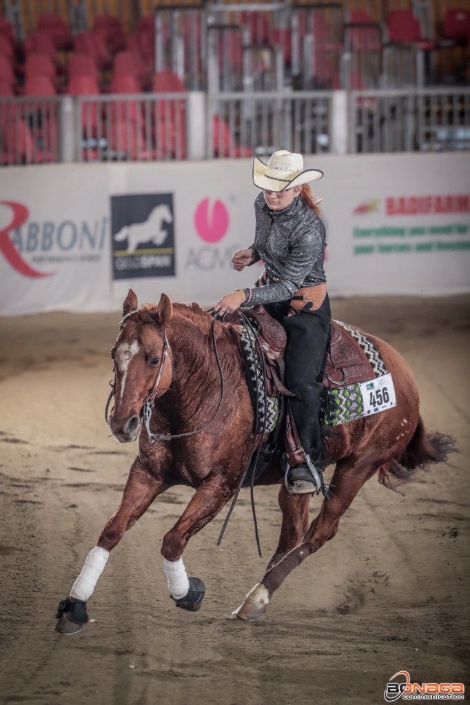 «Monto a cavallo da quando sono nata. Mia zia, Miriam Bevilacqua, ha sempre avuto questa passione e me l’ha trasmessa fin da piccolissima. Ha aperto la sua scuola di monta americana pochi anni dopo la mia nascita e le mie basi arrivano da lei. Le ho sempre dato una mano a gestire la scuderia e dopo la maturità, nel 2017, questo è diventato il mio lavoro a tempo pieno. Per quanto riguarda le gare, ho iniziato che avevo otto anni con quelle di Performance. Poi ho “mollato” per un po’ di anni finché, nel 2017, sono capitata per puro caso nella scuderia di Fabio Polesel cercando un cavallo per la nostra scuola di equitazione. È stato lì che ho scoperto il mondo del reining… Devo ringraziare tantissimo Fabio per il lavoro che ha fatto su di me, sia come persona sia come atleta. Mi ha davvero aperto un mondo! Alla metà del 2017 ho acquistato da lui la mia attuale cavalla, e se sono arrivata fin qua è merito suo!».