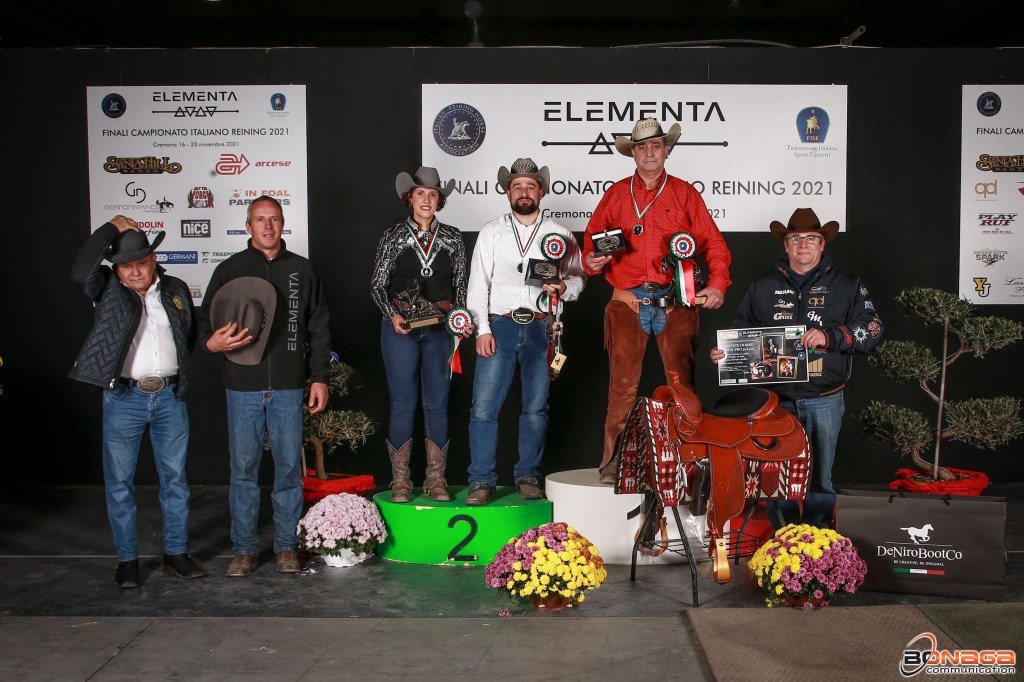 Il podio del Campionato Italiano Novice Riders vede ben tre binomi ex aequo in seconda posizione a quota 141: Lucio Lavezzari in sella a As Just In Time, Simone Pichler con Rz Remshot e Serena Grenzi insieme A Joes Lil Gun.