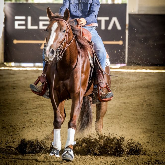 | Ex ARC SENORITA CAL BAR QUARTER HORSE By SNAPPER CAL BAR NCHA $248,987 COA NCHA Non-Pro Futurity Champion NCHA Open Derby Co-Champion. Breeding Stallion in Italy. Sire of many Champions. Winning get include: 2003 Open Derby NRHA of Germany, 2003. 2004 Open + Non Pro Derby NRHA of Germany, 2004 Italian Open Futurity and many more. Deceased. | |