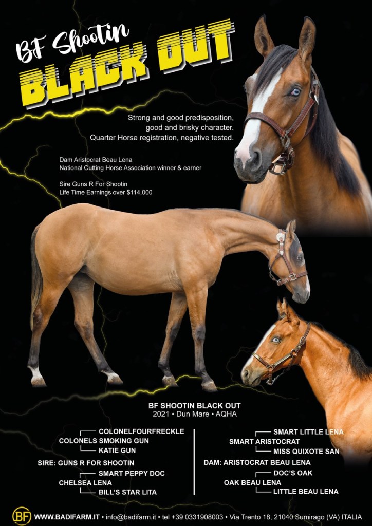 | Sire GUNS R FOR SHOOTIN ![]() LTE $114,124 Splash White/Wide Blaze/Blue Eyes/L.Fore & Both Hind Socks AQHA Show H-0/P-20 ROM Performance also APHA reg Owned by: Humphrey Quarter Horses 5 Panel N/N Decease December 2021 | By COLONELS SMOKING GUN ![]() ch ov 14.2 1993 QUARTER HORSE #4472679 AKA Gunner Splash White with Bald Face/Blue Eyes/Deaf Tested: HERDA, GBED, PSSM1, MH & OLW Negative Registered with AQHA & APHA (APHA AS Colonels Smokinggun)NRHA LTE $177,670. 1996 NRHA Open Futurity Res Champion 1998 NRHA Reserve Champion-tied 2001 Champion USET Reining Championship APHA Hall of Fame NRHA Hall Of Fame 9 Million Dollar Sire Breeder: Eric Storey foaled 3/18/1993 (AL) died July 8, 2013 from complications of laminitis ![]() |