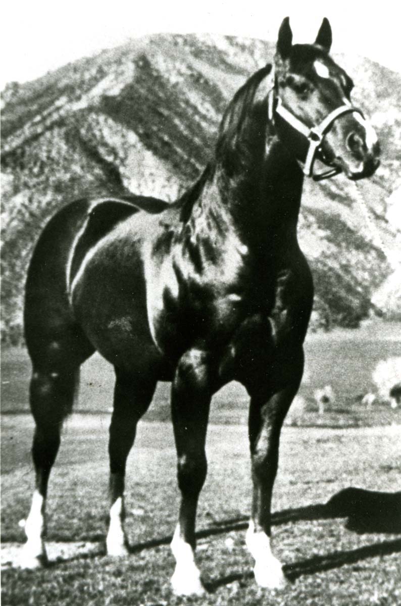 | Dam BF PLAY HOLLY STAR QUARTER HORSE | Ex DOCS GOLDEN GOLLY pal 1985 QUARTER HORSE AQHA# Grandgranddaughter of DOC BAR ![]() AQHA Show H-36/P-0 ROM Halter AQHA Race SI:75/A, 4-0-0-1, $95. Leading sire of AQHA Champions, NCHA Champions, and Arena ROMs. Offspring earned $1,178,484 in cutting. SIRE OF: 487 foals, 1960-1978. 323 performing foals. World Ch 9, Reserve World Ch 4, Top Ten World Show Offspring, Superior Halter. AQHA Hall of Fame Doc Bar was humanely put down on July 20, 1992. He was 36 yrs old. |