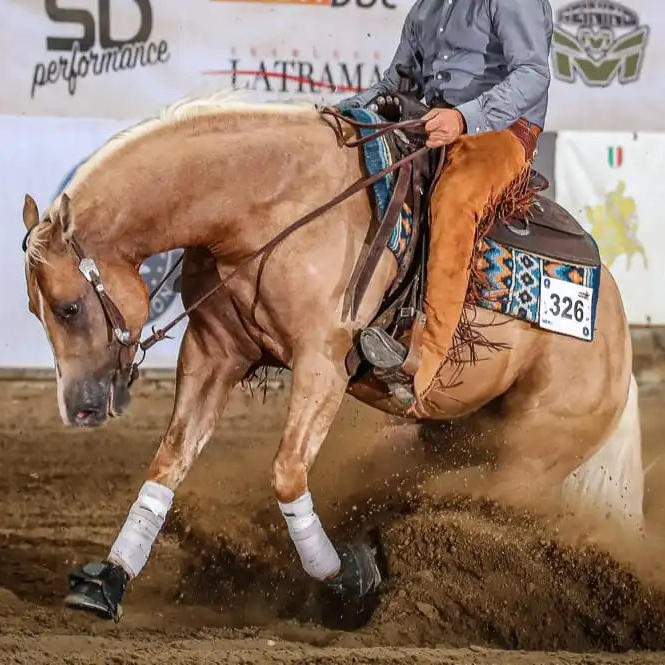 | By SNAPPER CAL BAR ![]() b 1981 QUARTER HORSE AQHA #1748109 NCHA $248,987 COA NCHA Non-Pro Futurity Champion NCHA Open Derby Co-Champion. Breeding Stallion in Italy. Sire of many Champions. Winning get include: 2003 Open Derby NRHA of Germany, 2003. 2004 Open + Non Pro Derby NRHA of Germany, 2004 Italian Open Futurity and many more. Deceased. | |