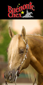 | By BUENONIC CHEX ![]() pal 1994 QUARTER HORSE AQHA #3307947 Currently the Equistat #4 All-Age/All Division Reining Leader, earning $84,215 and showing, BUENONIC CHEX was Co-Champlon of the 1998 NRHA Open Derby and Champion of the 1997 Congress Open Reining Futurity. He also tied for fifth in the 1997 NRHA Open Futurity and sixth in the 1998 National Reining Breeders Cup 4/5-Year-OId Open Champion-ship. Currently fourth in the Nation in Equistat’s 1998 Mid-Year Reining Statistics, BUENONIC CHEX is qualified for the 1998 AQHA World Championship Show in Junior Reining, to be shown by Todd Sommers, and is AQHA Performance ROM, earning 11 open reìning points to July, 1998. | |