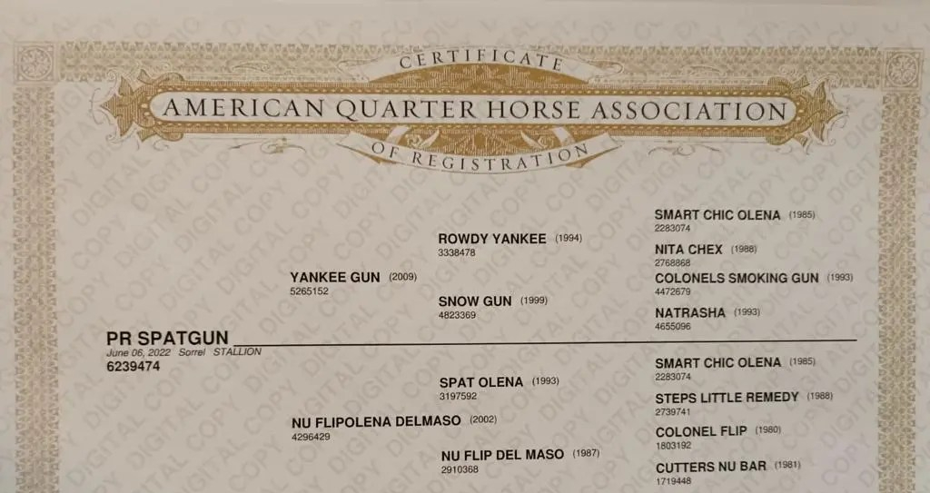 | Sire YANKEE GUN ![]() b 2009 QUARTER HORSE NRHA LTE $151,000 featured in Sylvester Stallone’s movie Rambo: Last Blood ridden by Sylvester Stallone | By ROWDY YANKEE ![]() b 1994 QUARTER HORSE #3338478 NRHA $84,480.08 Offspring NRHA $1 MILLION +++ NRHA #1 Junior Sire 06 NRBC USEF Qualifier Gold Medalist 06 NRBC Open Class Champion 06 Gordyville USEF Qualifier Bronze Medalist 97 NRHA Non Pro Futurity Champion NRHA Saddlesmith Non Pro Champion Reining By The Bay Open and Non Pro Derby Champion Gordyville Breeders Cup Non Pro Futurity Champion 97 NRHA Futurity Non-Pro Champion 97 Tradition Futurity Non-Pro Co-Champion 97 NCRHA Futurity Non-Pro Champion 97 $1000.00 Snaffle Bit Non-Pro Champion 98 National Reining Breeders Classic Non-Pro Champion 98 Gordyville Breeders Cup Non-Pro Futurity Champion 98 $5,000.00 Saddlesmith Non-Pro Champion-NRHA Futurity ![]() |