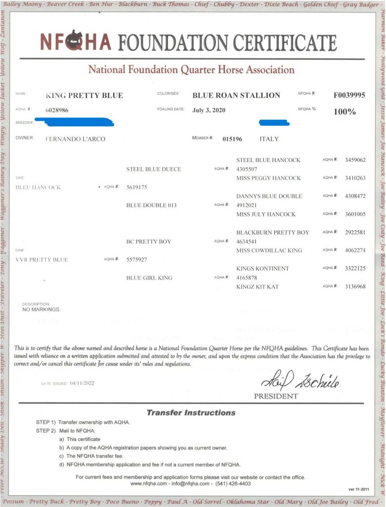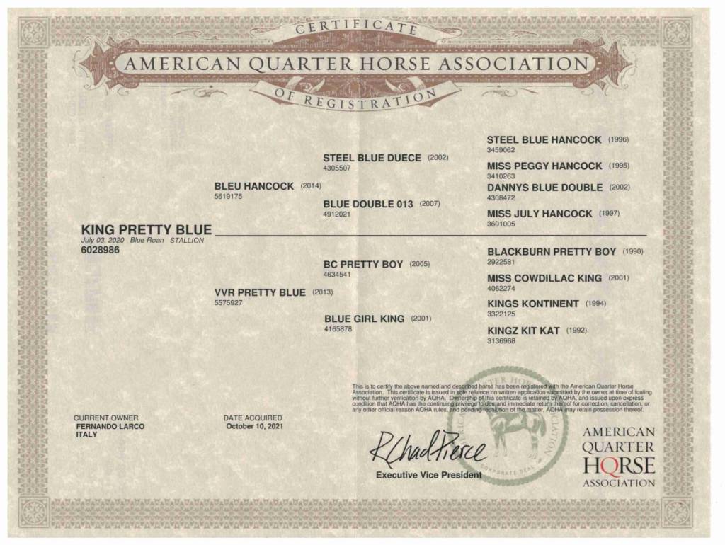 | Dam VVR PRETTY BLUE 2013 QUARTER HORSE | Ex BLUE GIRL KING bl ro 2001 QUARTER HORSE |