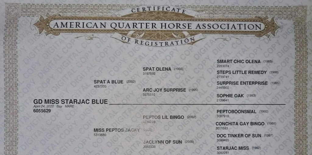 | Dam MISS PEPTOS JACKY 2008 QUARTER HORSE | Ex JACLYNN OF SUN pal QUARTER HORSE Ex STARJAC MISS ![]() Dunalino Unshown Dam of 19 foals, 7 point-earners, 11 money-earners, offspring LTE $754,930; including: Platinum Vintage (2010) stallion by A Sparkling Vintage – 2015 NRHA Open Derby Champion Starjac Vintage (2016) stallion by A Sparkling Vintage – 2021 NRHA Open Derby Co-Reserve Champion |