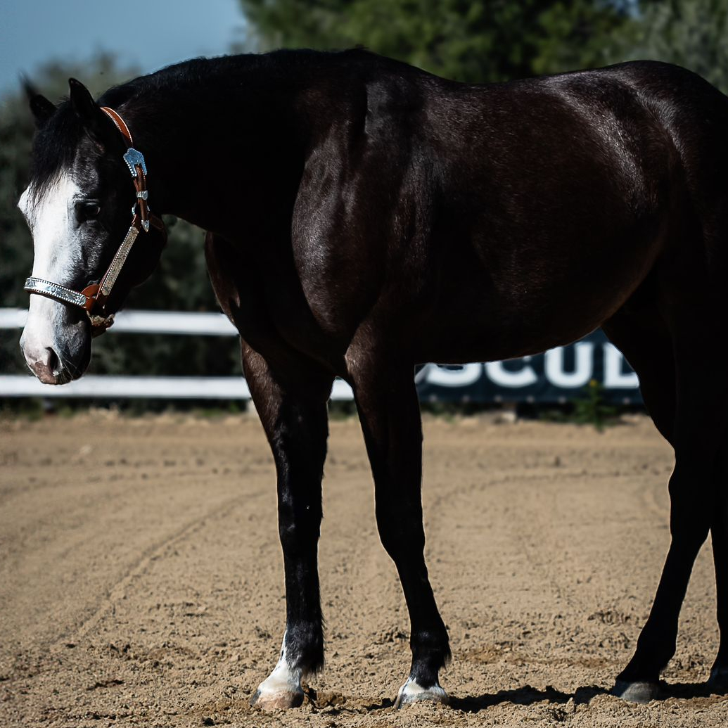 | Ex PLAYGUNS SMOKING ![]() gr 2000 QUARTER HORSE AQHA 3908360 By PLAYGUN ![]() gr 15.0 1992 QUARTER HORSE #3178989 Left Hind Sock, Greyed out bay AQHA Show H-0/P-24 ROM Cutting 1996 AQHA World Jr Cutting-3rd 1997 AQHA World Jr Cutting-7th 1995 AQHA High Point Cutting-3rd 1997 AQHA Hi Point Cutting-10th NCHA $168,408 COA LTE $186,000. Finalist at 21 Major Events Sire of NCHA Super Stakes Open and Non Pro Champions, NCHA World Champion, RHAA World Champion (and more), Offspring Earnings over $8,000,000 and growing. Breeder: Wes Shahan, Pleasanton, TEX. PSSM1 N/N, HYPP N/N, MH N/N, HERDA N/N, GBED N/N FB 81,69%. | |