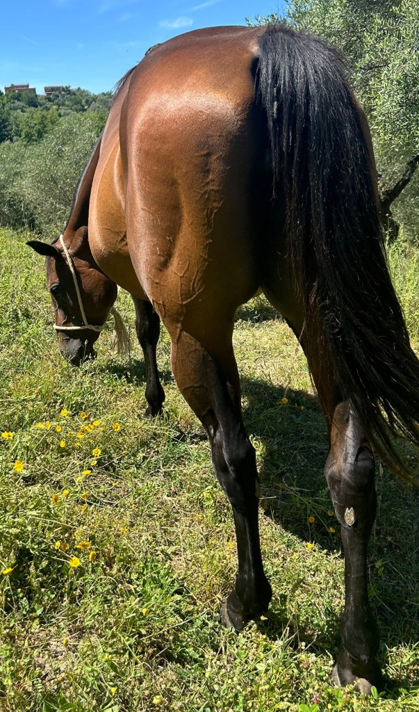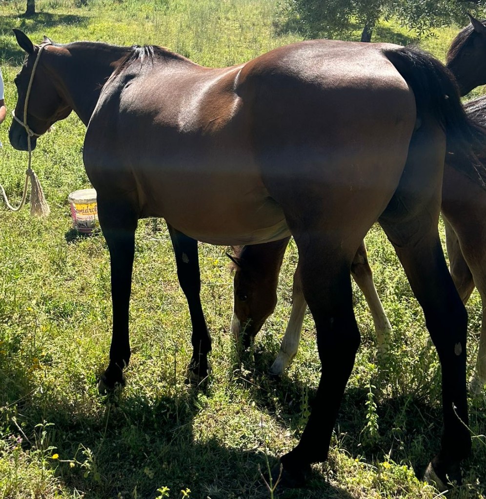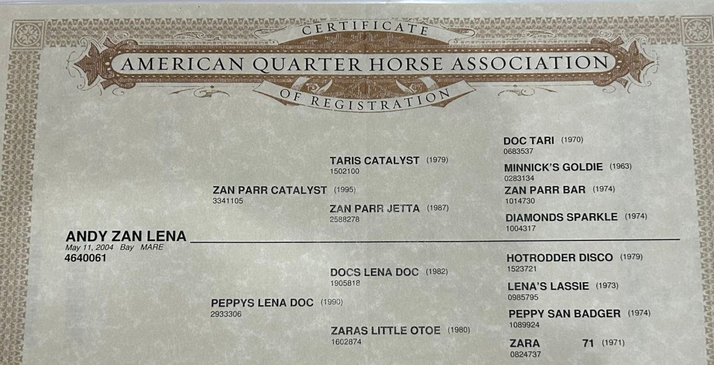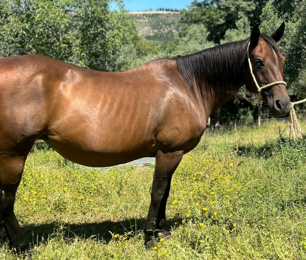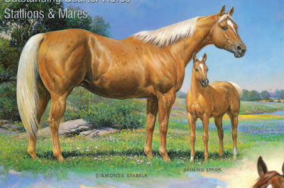 | Ex ZAN PARR JETTA ch 1987 QUARTER HORSE #2588278 Ex DIAMONDS SPARKLE ![]() Half Blaze AQHA Show H-23/P-120 AQHA Champion ROM Halter(23) ROM Heeling(39) ROM Reining(28) ROM Western Pleasure(31) ROM Heading(22) Superior Steer Roping 1979 AQHA World Show Superhorse (shown by “Sunny” Jim Orr) 1979 AQHA World Champion Sr Heading Horse 1979 AQHA World Championship Sr Reining-4th 1979 AQHA World Championship Sr Heeling-6th National Leader in 1978 All-Ages Reining AQHA Hall of Fame NRHA Hall of Fame Owned by Dick Steward, CO 80% NFQHA | |