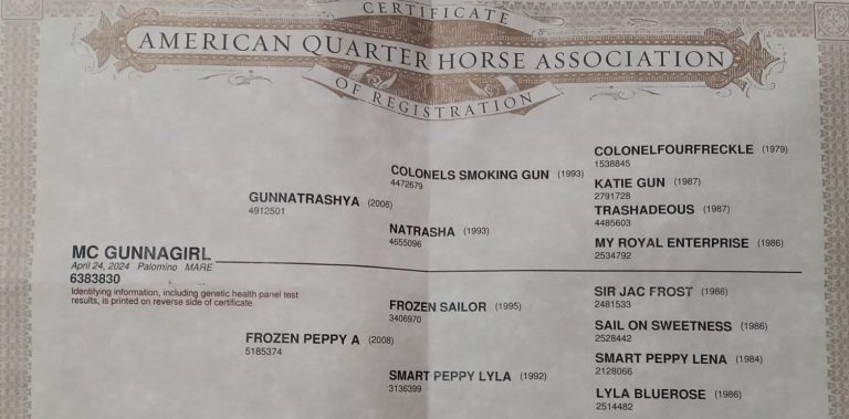 | Sire GUNNATRASHYA ![]() sor 14.1hh 2006 QUARTER HORSEAQHA#4912501 N/N | By COLONELS SMOKING GUN ![]() ch ov 14.2hh 1993 QUARTER HORSE AQHA #4472679 |