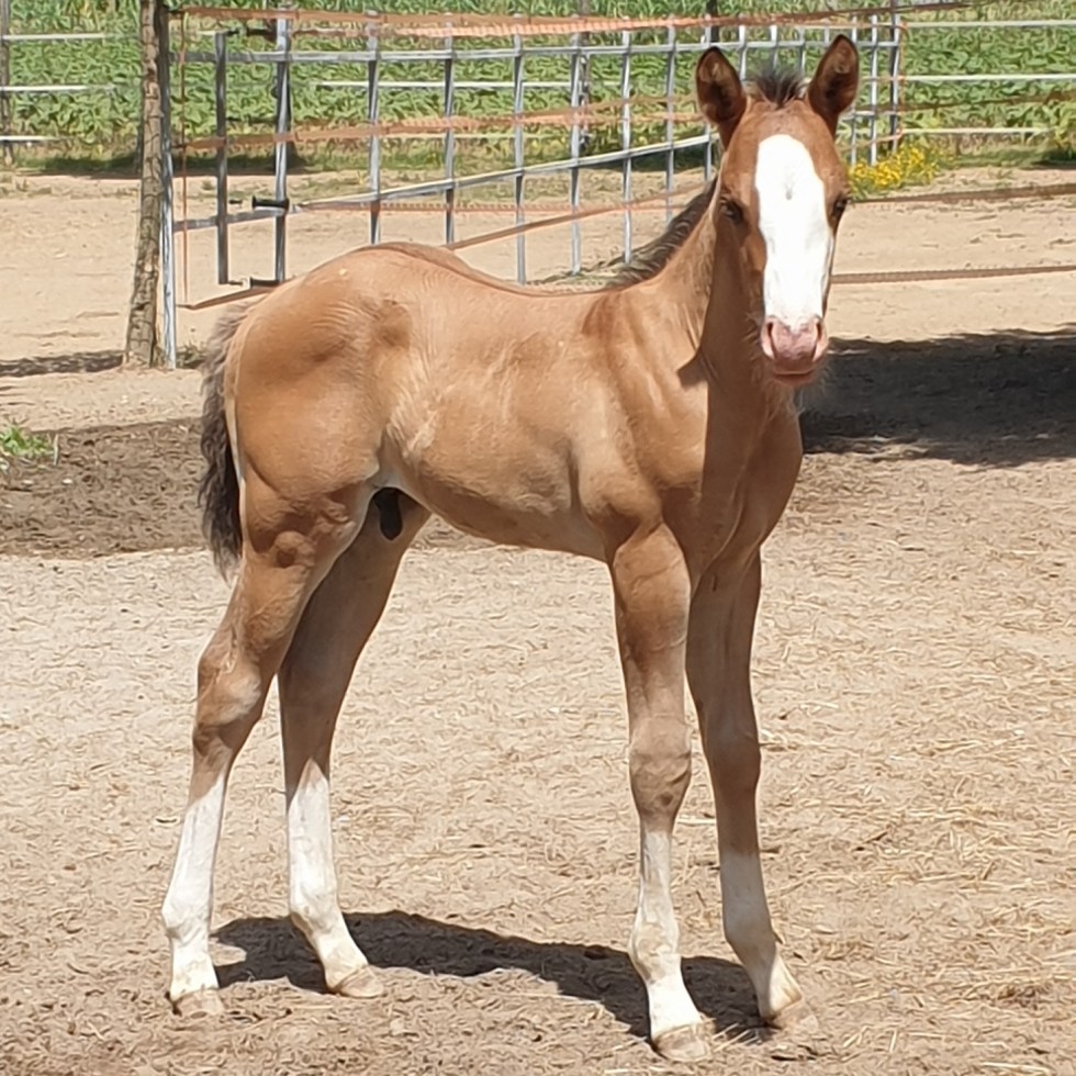 BAY COLT (2020) • COLONELS SURE AS A GUN X Smart Chic Olena & Jacs Great Pine MARE • REINING PROSPECT QUARTER HORSE • Sold … Venduto!